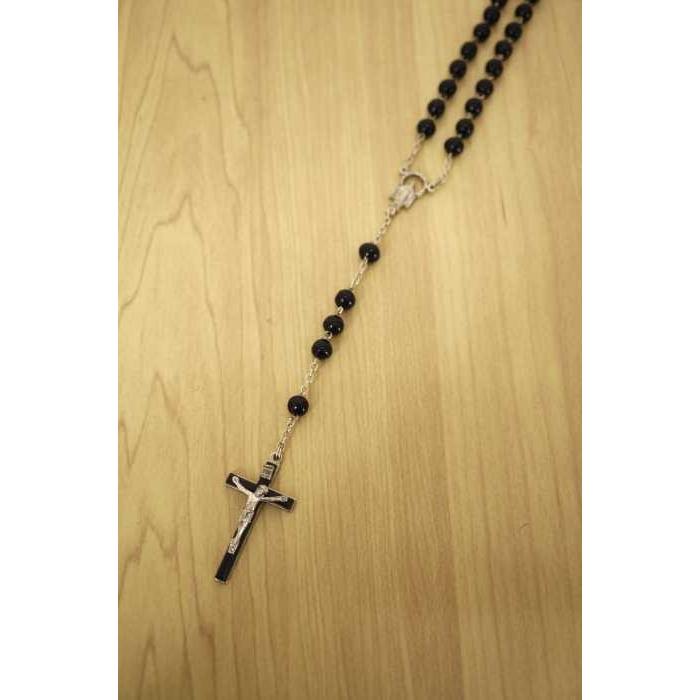 Amazon Lovoski ロザリオ祈る イエス クロスペンダント ネックレス メンズ ヒップ 8ミリメートルビーズ 全4色 ブラック おもちゃ おもちゃ